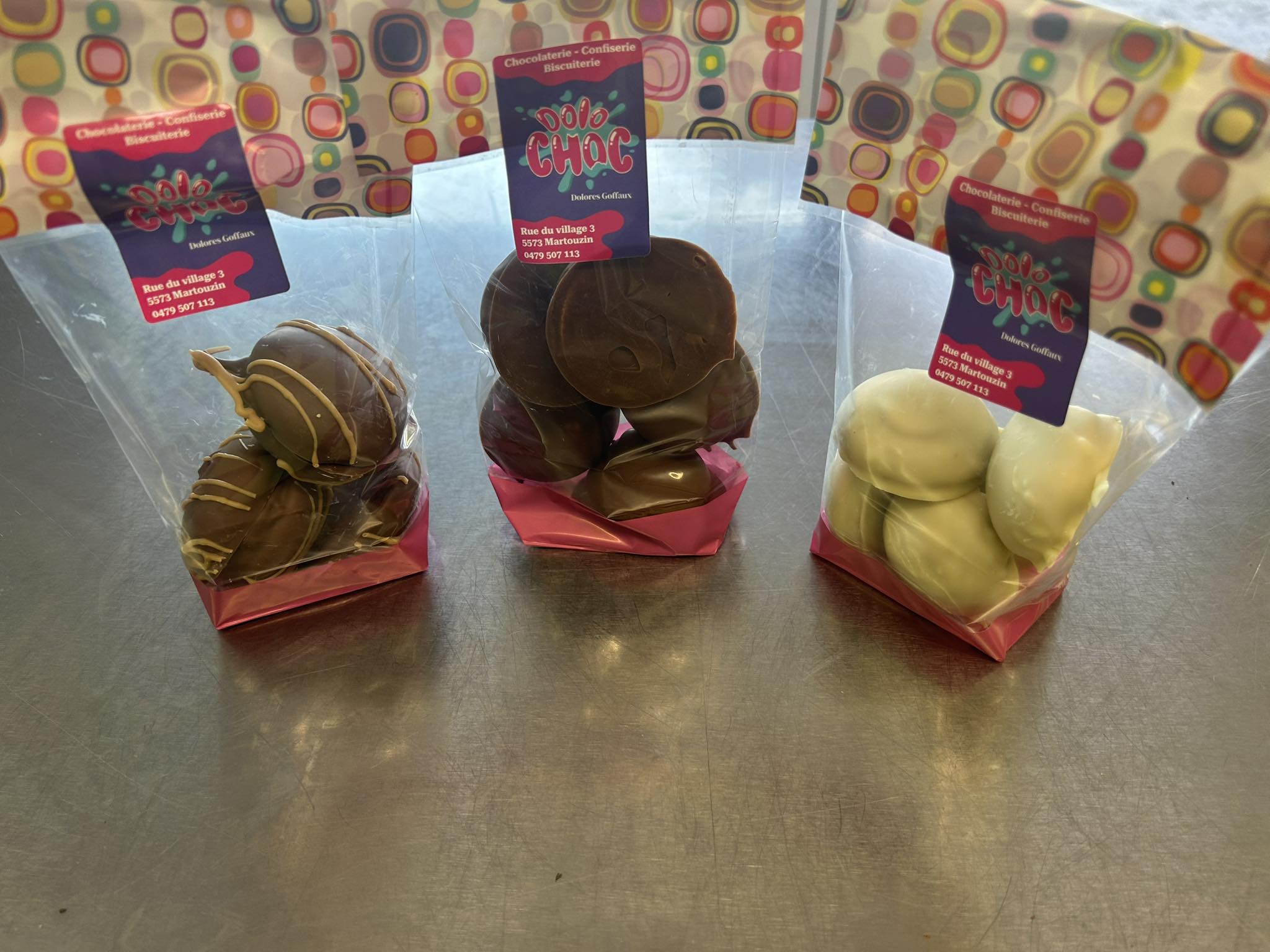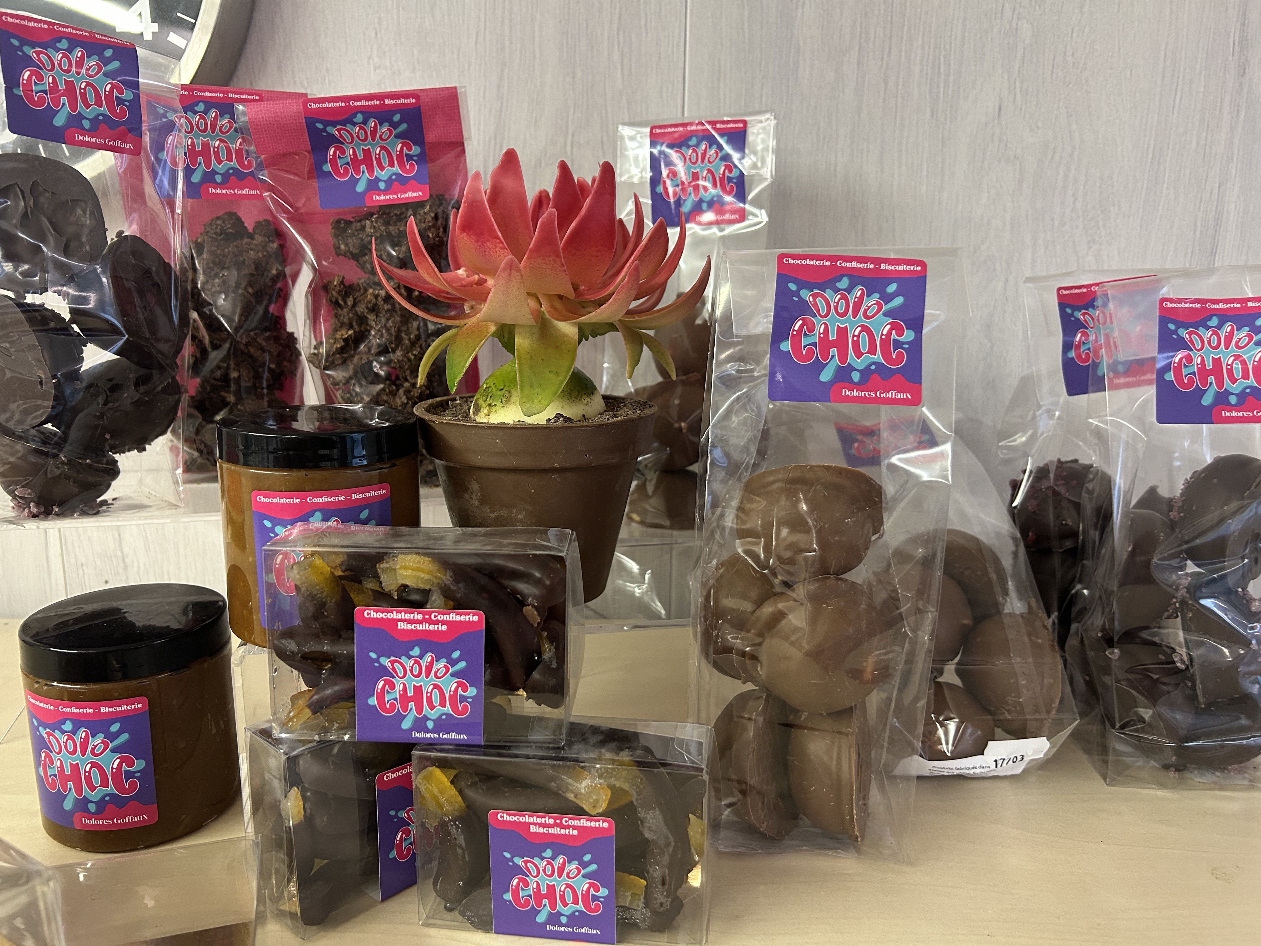 Diese letzte Ausbildung war ein echter Wendepunkt: Im Oktober 2024 eröffnete ich ‚Dolochoc‘, meine eigene handwerkliche Chocolaterie in Martouzin – ein neues Abenteuer, das ich mit Leidenschaft führe, während ich weiterhin als Lehrerin tätig bin.