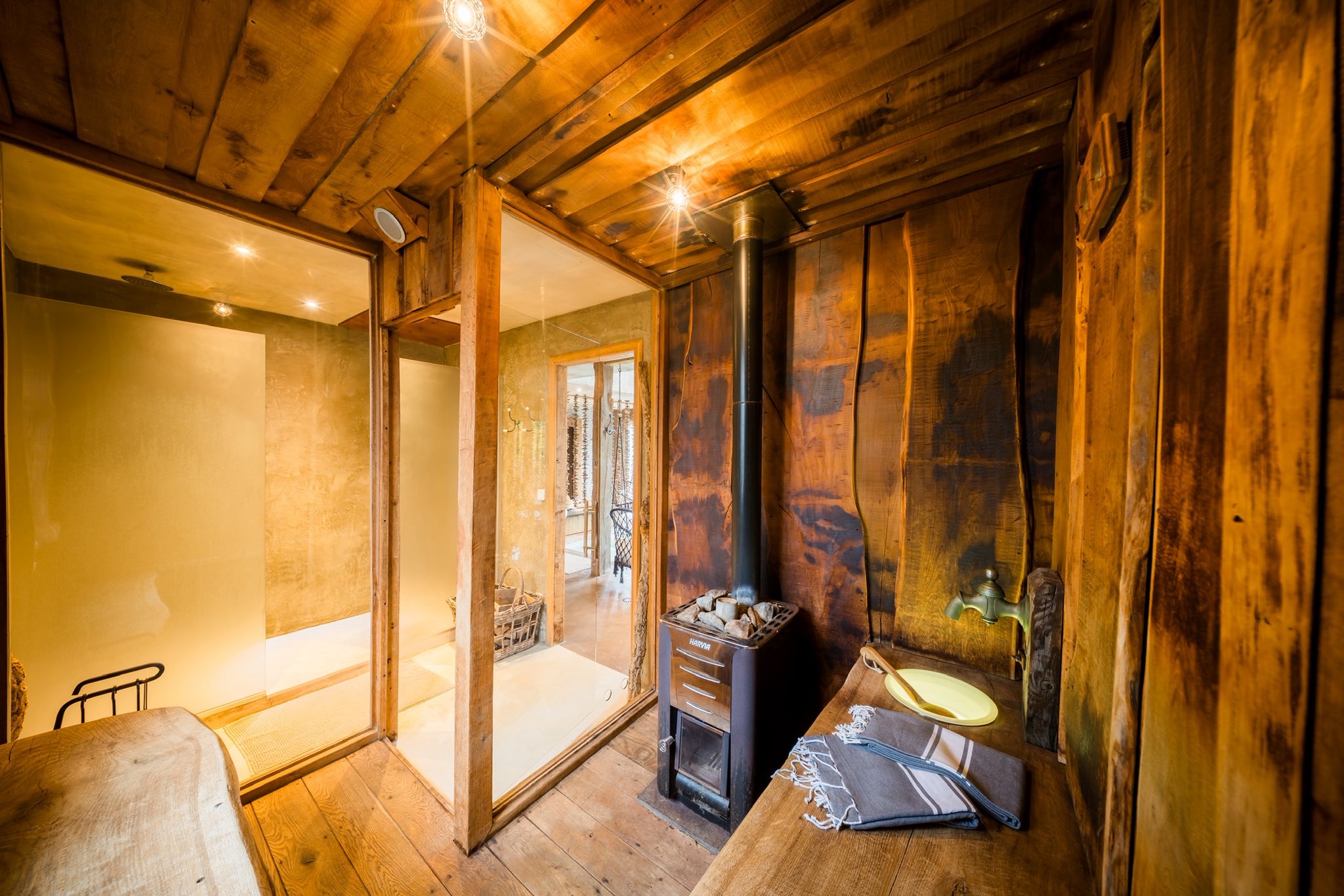 Le sauna au feu de bois, intégré dans notre espace wellness, reflète également cette démarche écologique.
