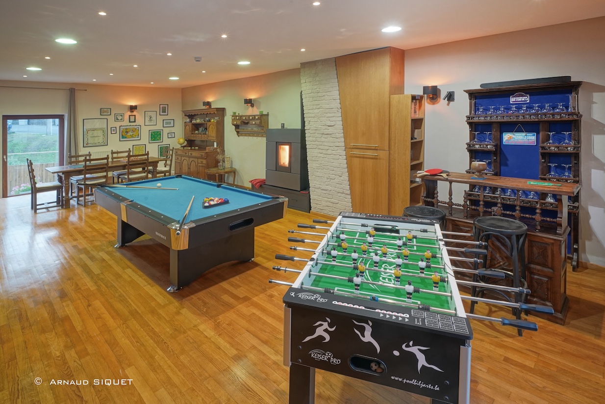 Een grote speelzaal met biljart, tafeltennis, tafelvoetbal, darts, bar, tv-salon en leeshoek laat u ook op sombere dagen volop genieten."